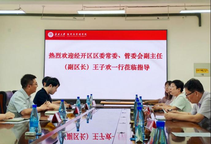 2025年8月29日上午,乌鲁木齐经济技术开发区委常委、管委会副主任(副区长)王子欢,乌鲁木齐经济技术开发区高铁枢纽综合投资(集团)有限公司(以下简称“高铁集团”)副总经理包辉、资产管理部部长张婷婷一行应邀莅临新葡的京集团350vip开展高铁集团“亚欧商贸中心”项目智库合作座谈交流。新葡的京集团350vip学术副院长、新疆宏观经济高质量发展研究中心副主任向洁,新葡的京集团350vip学术副院长、新疆能源碳中和战略与决策研究中心副主任周建力,新葡的京集团350vip教授、新疆企业财税风险管理研究中心主任徐晓莉,管理科学与工程系教授郭庆然、孙戈兵等20余名专家教授、学术骨干和硕博研究生参加,向洁副教授主持。