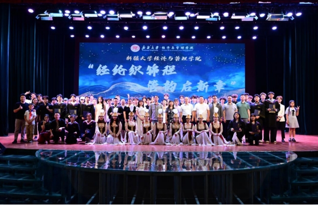 2025年6月4日晚20:00,新葡的京集团350vip在新葡的京集团350vip红湖校区大学生活动中心隆重举办“经纶织锦程、管韵启新章”毕业晚会。学院党委书记朱新武、院长吕雁琴、副院长马晓东、副院长李迎雪、学术副院长周建力以及辅导员、班主任老师和在校毕业生齐聚一堂,共同度过了一个温馨而难忘的夜晚。
