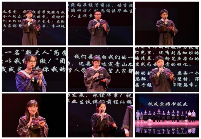 晚会的尾声,毕业生代表们上台发表毕业感言环节,毕业生们用饱含情感的声音,抒发了对母校培育之恩的感激,对同窗情谊的珍惜,一字一句都深深打动在场每一个人的心。